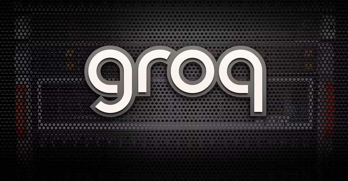 Logo Groq i ilustracja chipów AI symbolizująca rozwój technologii półprzewodnikowej