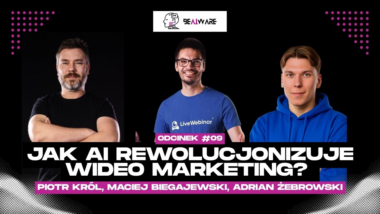 ![Jak AI rewolucjonizuje wideo marketing?[🎙️Podcast BeAIware x Piotr Król] Trzech prowadzących podcast o sztucznej inteligencji w wideo marketingu – Piotr Król, Maciej Biegajewski i Adrian Żebrowski na czarnym tle z tytułem odcinka.](https://beaiware.pl/wp-content/uploads/2025/07/Jak-AI-rewolucjonizuje-wideo-marketing--1024x576.jpg)