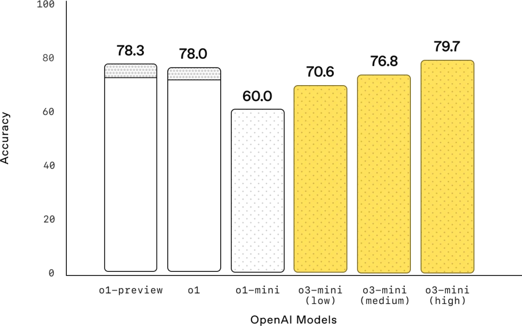 31 stycznia 2025 roku OpenAI zaprezentowało model o3-mini – najnowsze dzieło w serii dedykowanej logicznemu wnioskowaniu. To pierwszy mały model AI, który łączy niski koszt, szybkość działania i specjalizację w dziedzinach STEM (nauka, technologia, inżynieria, matematyka). Według twórców, o3-mini dorównuje wydajnością większym modelom, takim jak OpenAI o1, ale generuje odpowiedzi o 24% szybciej niż jego poprzednik, o1-mini. Testy wykazały, że w trybie „medium” radzi sobie z zadaniami na poziomie konkursów matematycznych AIME 2024 z dokładnością 83,6%, a z pytaniami naukowymi na poziomie doktoranckim (GPQA Diamond) osiąga 77% trafności.