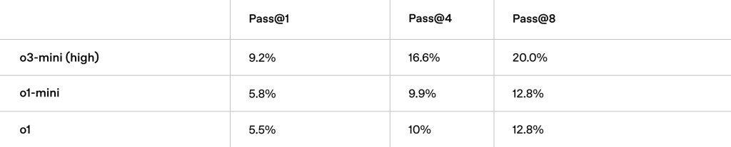 O3-mini to nie tylko moc obliczeniowa, ale i elastyczność. Deweloperzy mogą dostosować tryb pracy modelu do swoich potrzeb: niski, średni lub wysoki poziom zaangażowania. W trybie „high” model rozwiązuje ponad 32% problemów badawczych z matematyki (FrontierMath) już przy pierwszej próbie. Dla porównania, średni czas generowania odpowiedzi wynosi zaledwie 7,7 sekundy – to o 39% mniej błędów w trudnych zadaniach niż w przypadku o1-mini. Jak podkreśla zespół OpenAI: Testy pokazały, że o3-mini dostarcza bardziej precyzyjnych i klarownych odpowiedzi, zwłaszcza w dziedzinach ścisłych