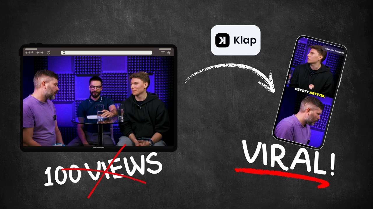 Porównanie długiego nagrania z niską liczbą wyświetleń i viralowego Shorts stworzonego w Klap