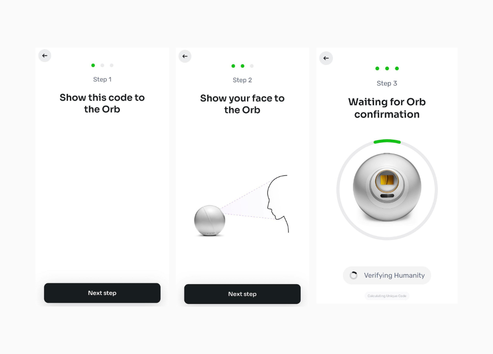 Weryfikacja World ID przebiega biometrycznie poprzez skan tęczówki oka. W ten sposób, potwierdzona zostaje twoja ludzka tożsamość, a technologia World ID zapamiętuje twoje dane, zapobiegając wielokrotnemu tworzeniu identyfikacji.
