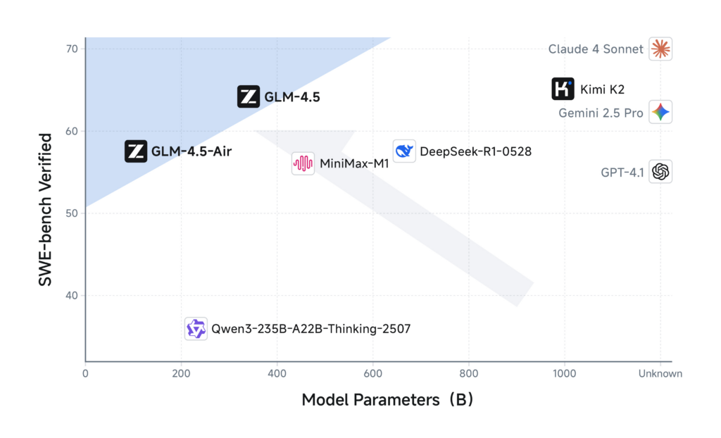 - GLM-4.5: Flagowy model z 355 miliardami parametrów (32 miliardy aktywnych w danym momencie).